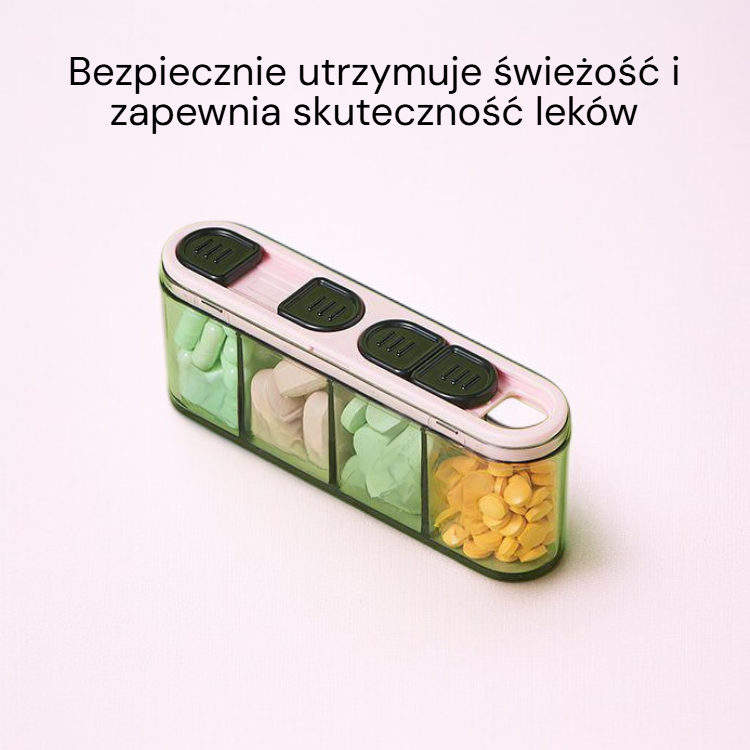 ● Praktyczne przegródki pozwalają na uporządkowanie różnych leków, co ułatwia codzienne dawkowanie i eliminuje ryzyko pomyłki.