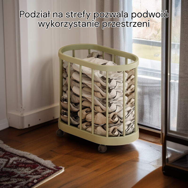 ● Mobilny kosz do przechowywania umożliwia łatwe przenoszenie rzeczy dzięki wygodnym uchwytom i lekkiej konstrukcji, idealny do każdego pomieszczenia w domu.